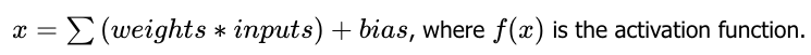 - 입력은 뉴런의 가중치로 곱해지고 출력은 관찰(observed, 현재 뉴런 또는 계층 내에서 사용되거나 분석됨)되거나 다음 계층으로 전달(passed, 추가 처리를 위해 신경망의 다음 계층으로 전송)됨