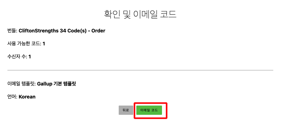 이메일 코드를 누르면, 해당 이메일로 테스트 진행 초청 메일이 보내진다.