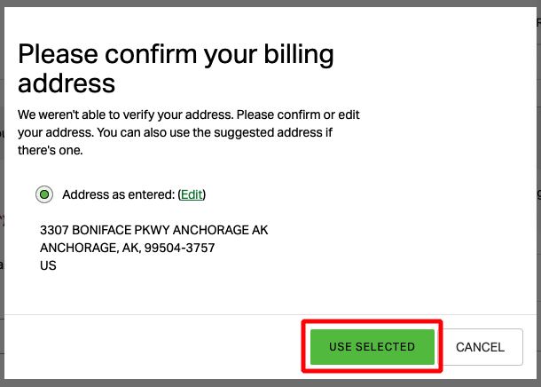 17. 주소 확인이 안 될 때 - 'USE SELECTED'를 누른다.