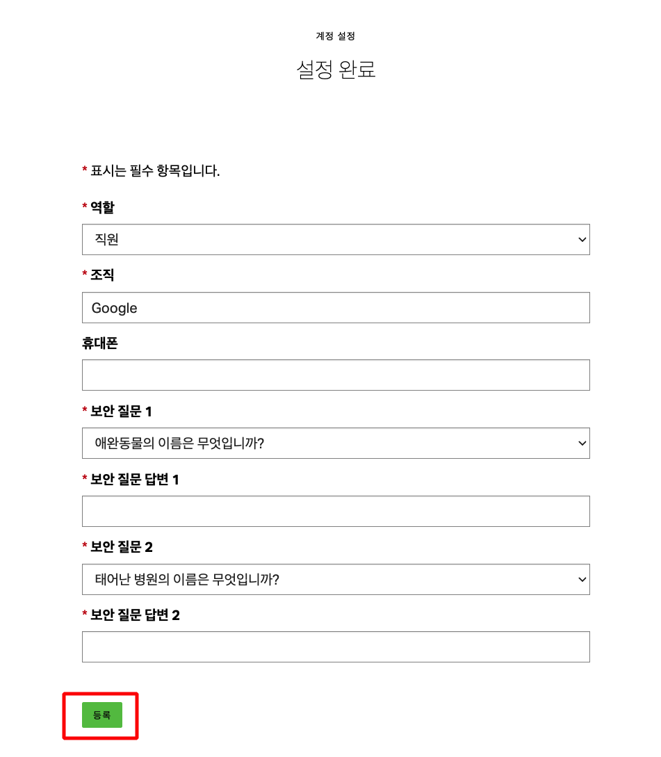 5. 추가 정보를 입력하고 설정을 완료한다.