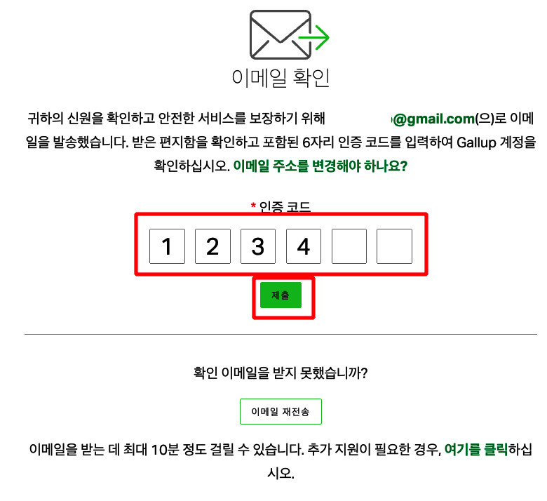 6. 이메일로 전송된 인증 코드를 제출한다.