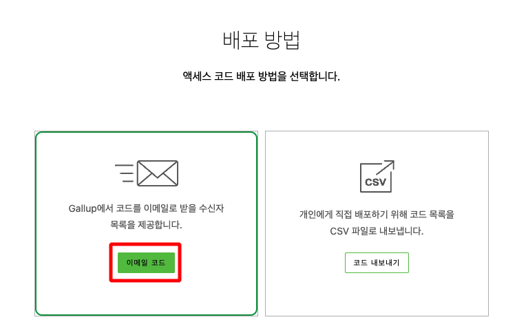 22. 배포 방법에서 '이메일 코드'를 누른다.