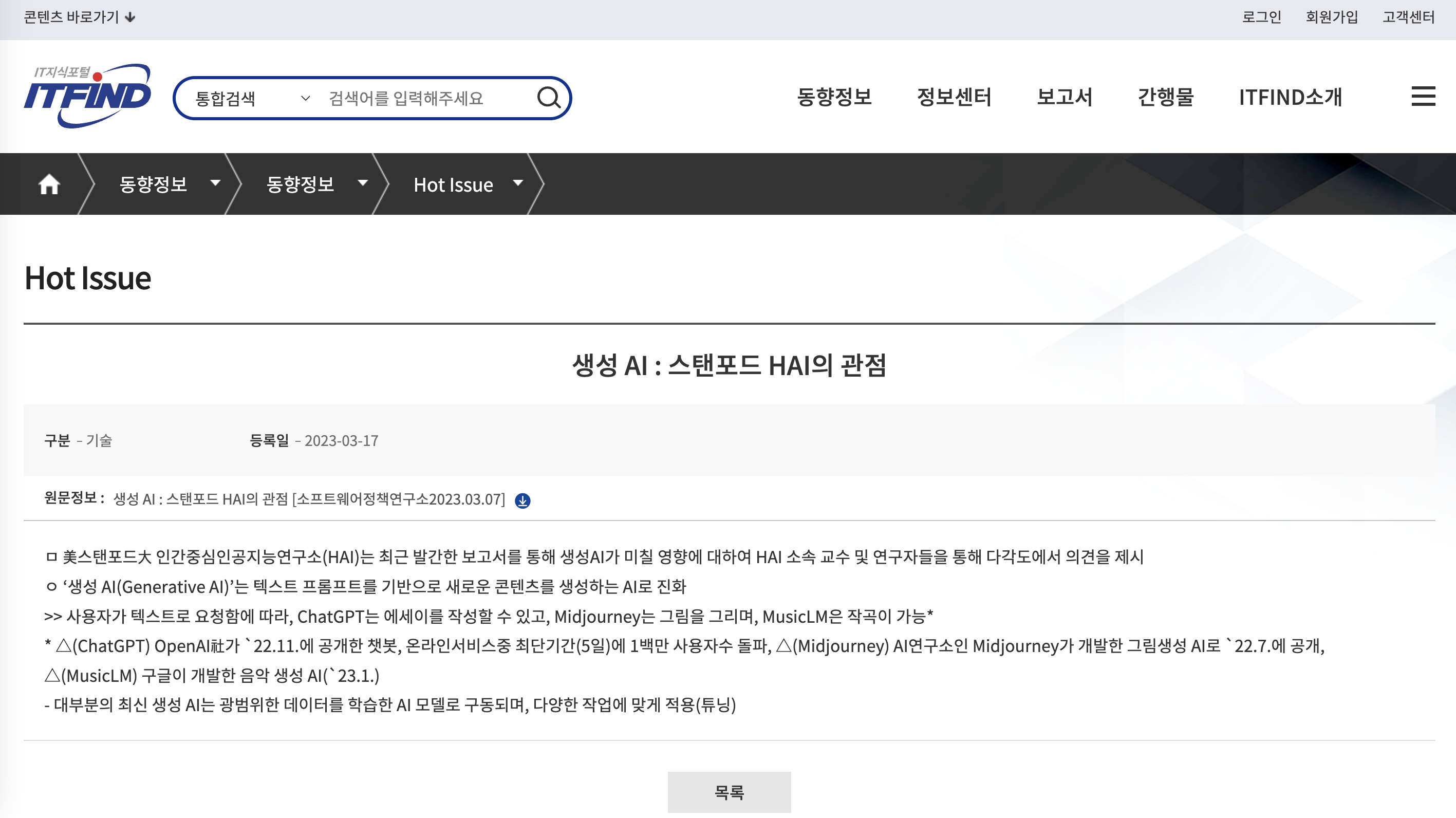 ITFIND(정보통신기획평가원(IITP) 정보서비스팀에서 개발한 ICT정보 종합검색시스템): ITFIND - Hot Issue