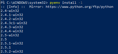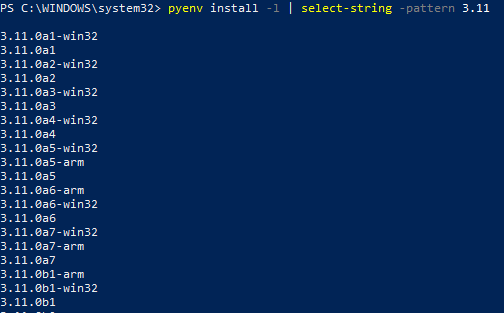 pyenv install -l | select-string -pattern 3.11