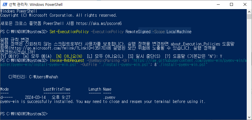 2. PowerShell을 재시작한다.
