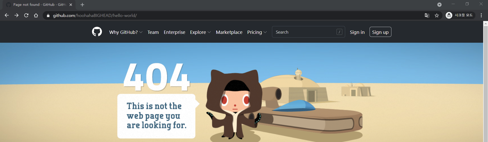위처럼 시크릿 모드에서 접속했을 때 보였던 링크가 404 not found로 바뀐 것을 알 수 있다.