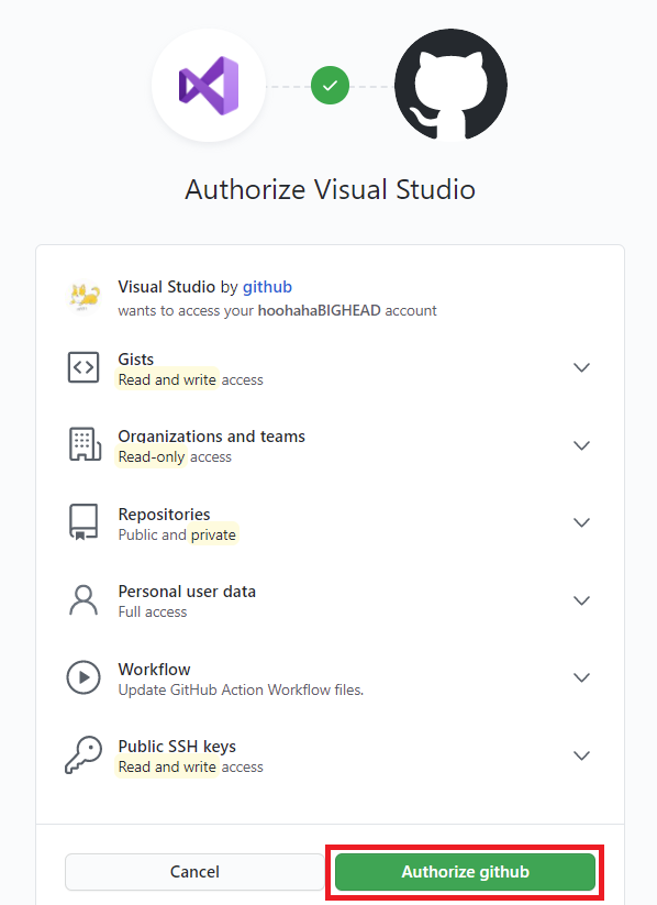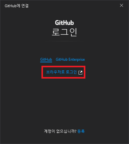 '브라우저로 로그인'을 클릭하면 인터넷에 이렇게 로그인하도록 나온다. 'Authorize github'를 누르면 끝이다.