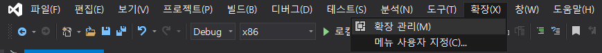 1. '확장(X)' 메뉴에서 '확장 관리(M)를 클릭한다.