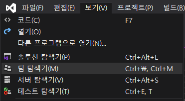 1.1. '보기'에서 '팀 탐색기'를 누른다.