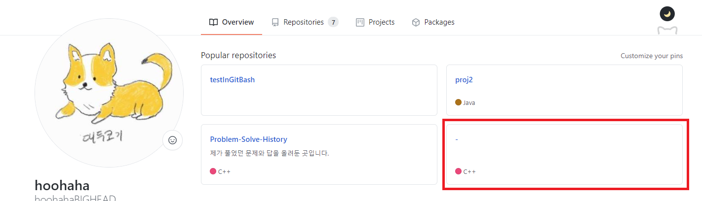 깃허브 계정에 가보면 이렇게 게시가 된 것을 확인할 수 있다.