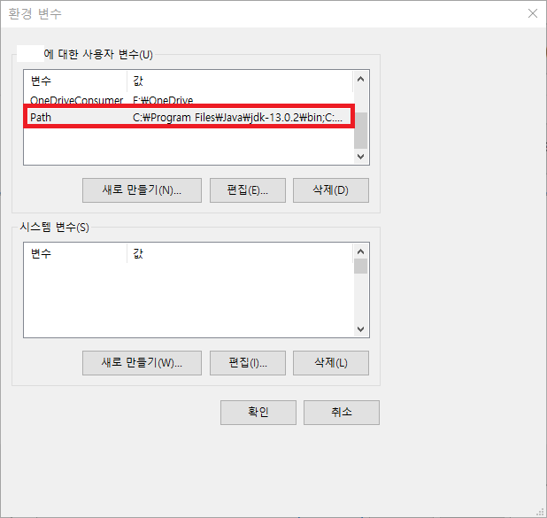 5. '시스템 변수'의 Path를 선택하고 '편집'을 클릭한다.