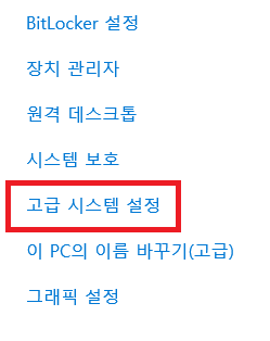 2. 우측 상단의 '고급 시스템 설정'을 클릭한다.