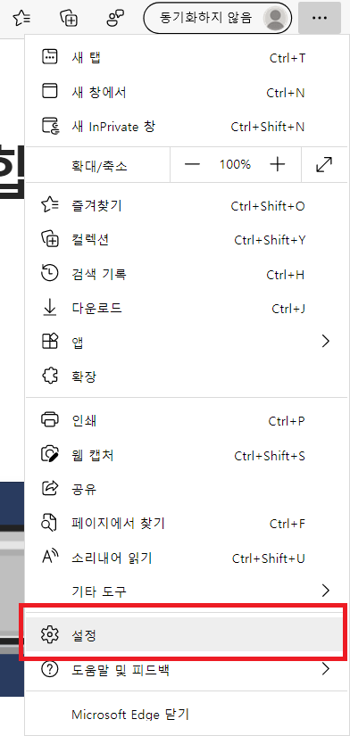 오른쪽 위 ... 버튼을 누르고 설정을 클릭하면 된다.