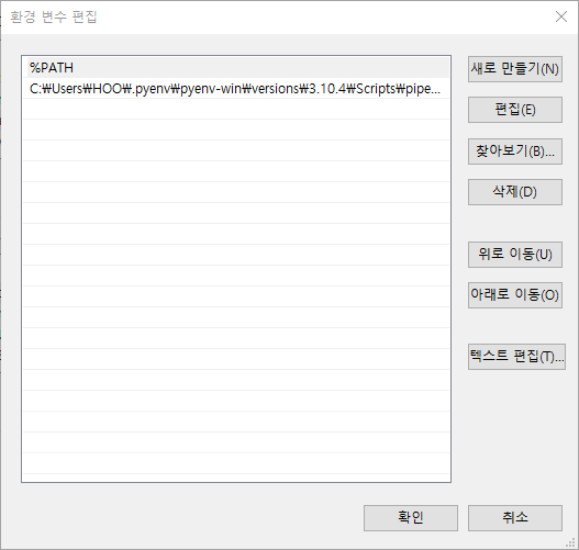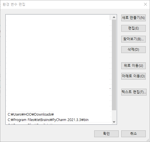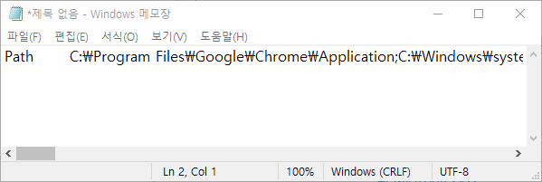 위의 'Path'를 클릭하여 활성화시키고, Ctrl+C를 입력하면 환경변수가 복사된다.