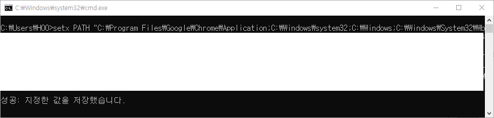마지막으로 setx 명령어를 이용하여 환경 변수를 저장하면 된다.
