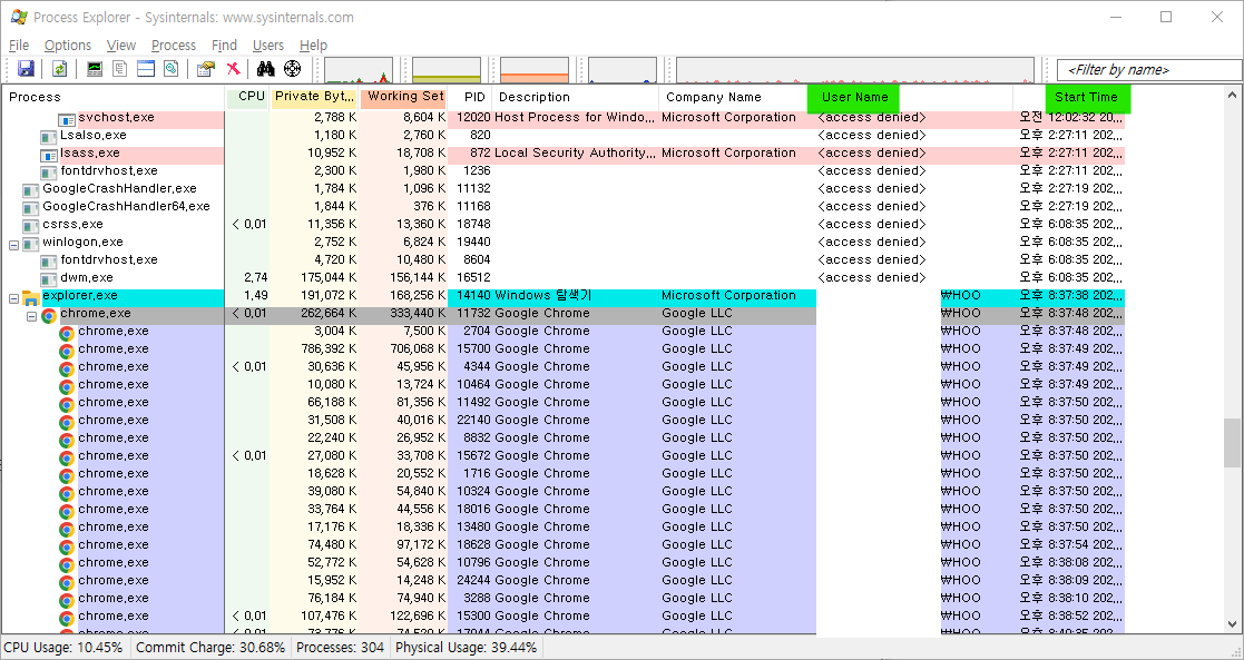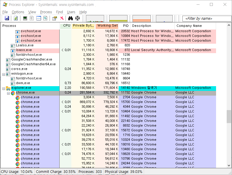 'Process Explorer' 프로그램을 다운로드 후 실행한다.